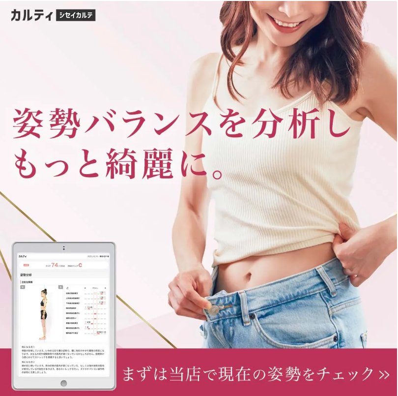 シセイカルテは東京大学発のAI開発企業Sapeet(サピート)が開発した、最先端のAI姿勢分析システムです。これら情報から、お客様に合ったオーダーメイドのメニューを実現いたします。姿勢を整え、身体本来の正しい使い方が自然に出来るようになると、代謝が上がり日常から脂肪が燃えやすい身体に生まれ変わることが出来ます。
